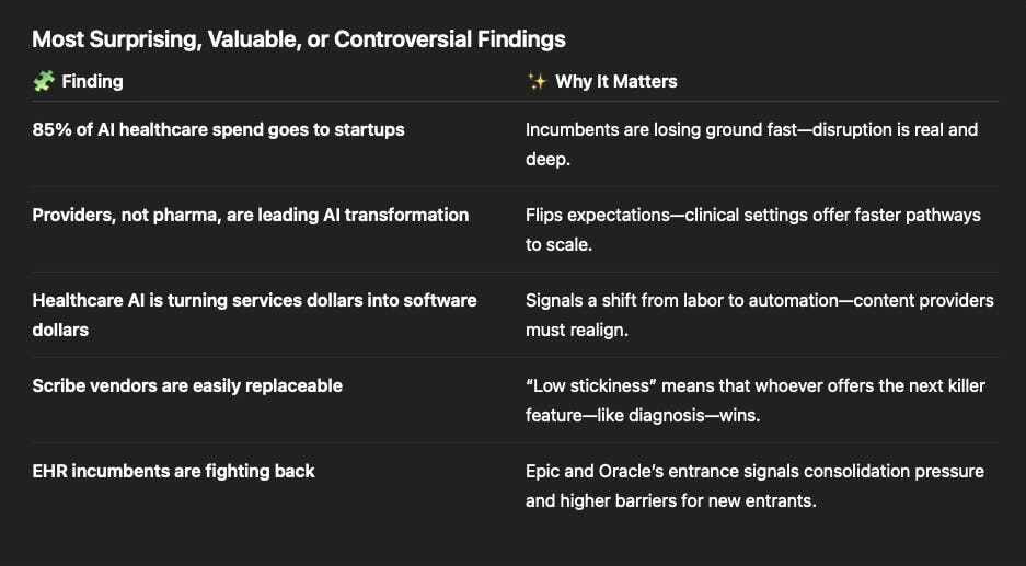 However, ambient scribing is hitting adoption plateaus (35%-40%) and vendor stickiness is low. Organizations are already seeking AI vendors that go beyond transcription—toward compliance, diagnosis, and billing.