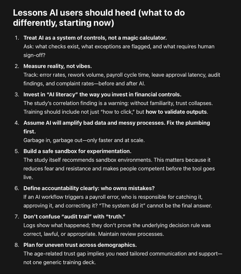 The study captures a very common pattern in AI adoption: AI improves routine operational performance when it is embedded into a well-governed process and supported by training. The biggest risk isn’t that AI can’t do payroll; it’s that organizations roll it out without the skills, governance, and accountability structures needed to keep it trustworthy.