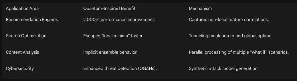 One of the most promising developments for the publishing industry is the rise of “quantum-inspired” algorithms (QIO). These are classical algorithms that use the mathematical principles of quantum mechanics, such as superposition and tunneling emulations, to solve optimization problems on existing classical hardware (CPUs and GPUs).21