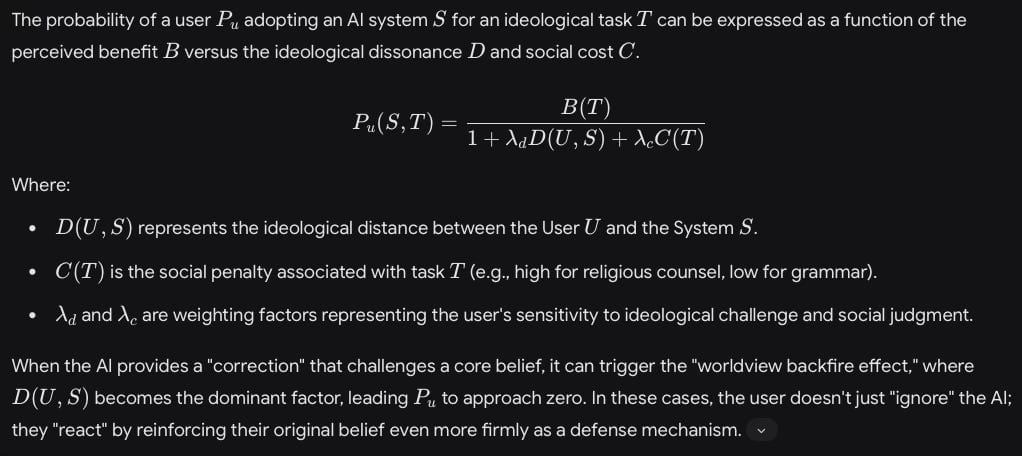 Summary: Psychological research confirms that users avoid AI for worldview-sensitive tasks to protect their identities and avoid "preachy" moralizing that triggers cognitive dissonance or a "backfire effect".