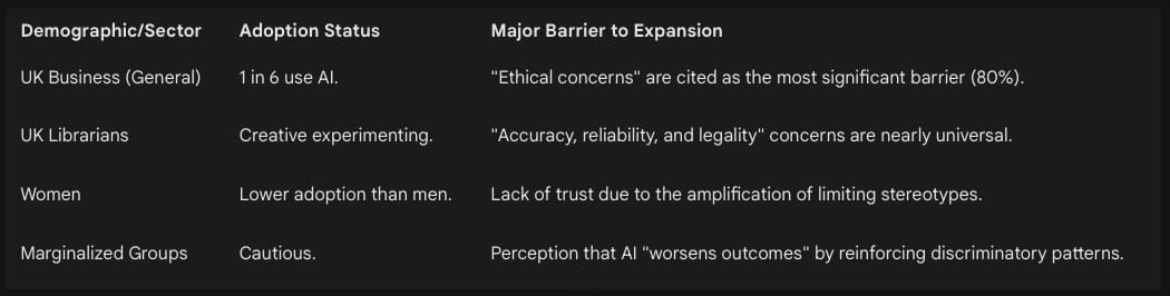 Adoption is Hindered by Stigma: The “social penalty” for AI use creates a deterrent that prevents open adoption in professional and strategic domains. Workers would rather “conceal” their use than risk being seen as less competent or motivated.4