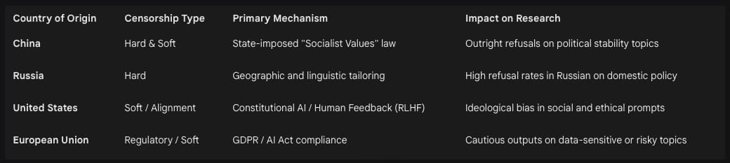 Beyond fiscal constraints, the integration of LLMs into the global political discourse has made them targets for regulation and ideological alignment. Commercial models are no longer “raw” predictors of text; they are filtered through “Constitutional AI” frameworks and safety guardrails designed to reflect specific regional and corporate values.3 This has led to the emergence of both “hard censorship”—where a model flatly refuses to answer—and “soft censorship,” where the model provides a sanitized or propaganda-aligned response.3