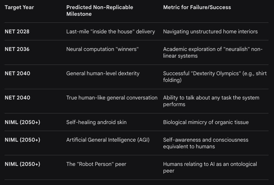 Table 4: Rodney Brooks’ Predictions Scorecard for Non-Replicable Milestones