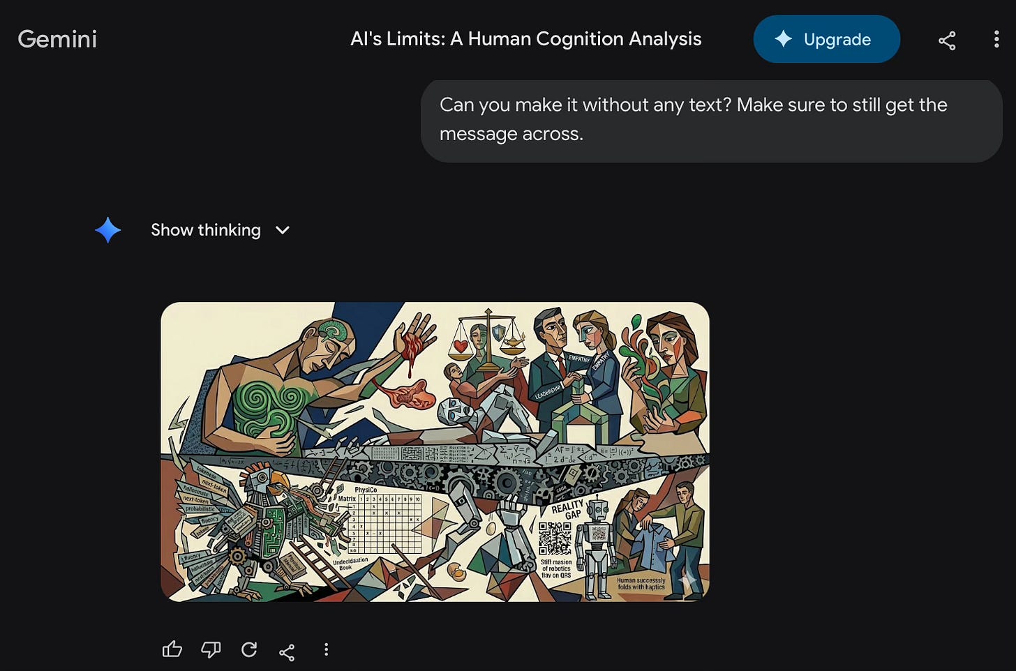 Experimental evidence highlights the inability of AI to navigate semantic shifts that require a world model. In tasks involving “PhysiCo”—a summative assessment of physical concept understanding—state-of-the-art models like GPT-4o and Gemini 2.0 lag behind human performance by approximately 40%.6 While these models can perfectly describe physical concepts in natural language (memorization), they fail when those concepts are abstracted into grid-formatted matrices that require applying knowledge to novel patterns.6
