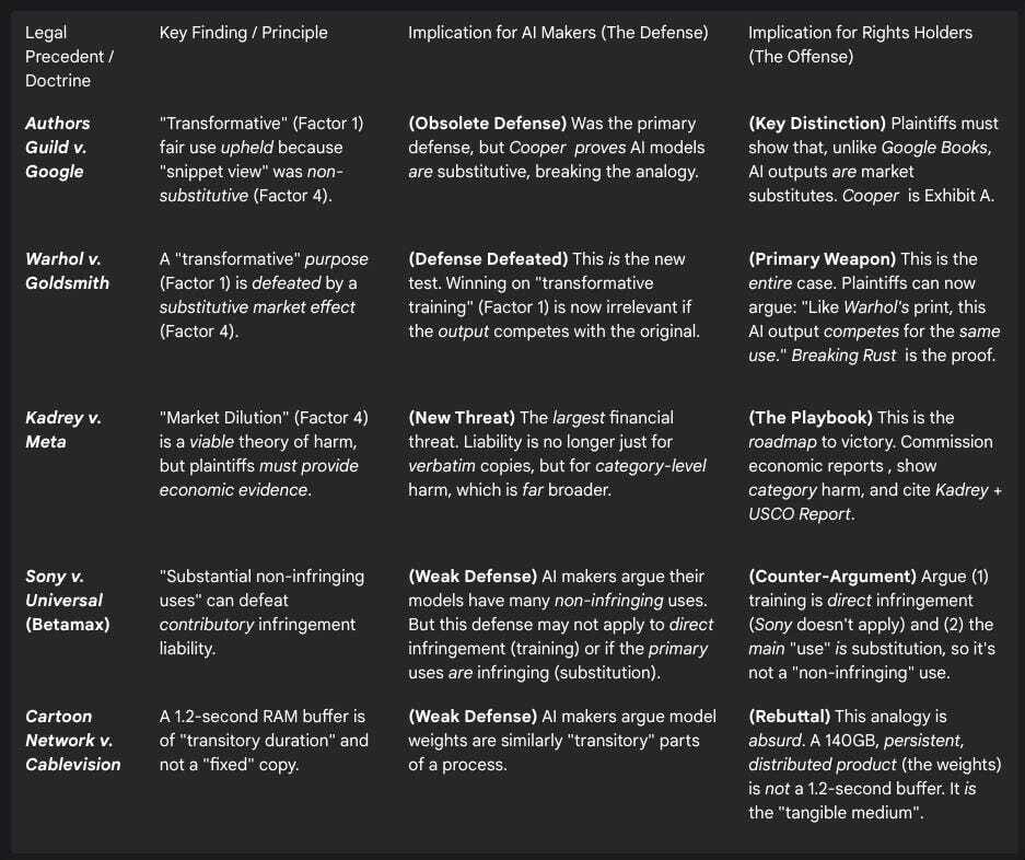 However, the legal battle has pivoted. Winning on Factor 1 (Input) no longer wins the case. The Warhol v. Goldsmith 5 precedent has made the entire case hinge on Factor 4 (Output). Tech companies’ legal strategies, which were built on the Google Books 16 “transformative use” (Factor 1) precedent, are now obsolete because their models fail the Google Books 6 “non-substitutive output” (Factor 4) test.