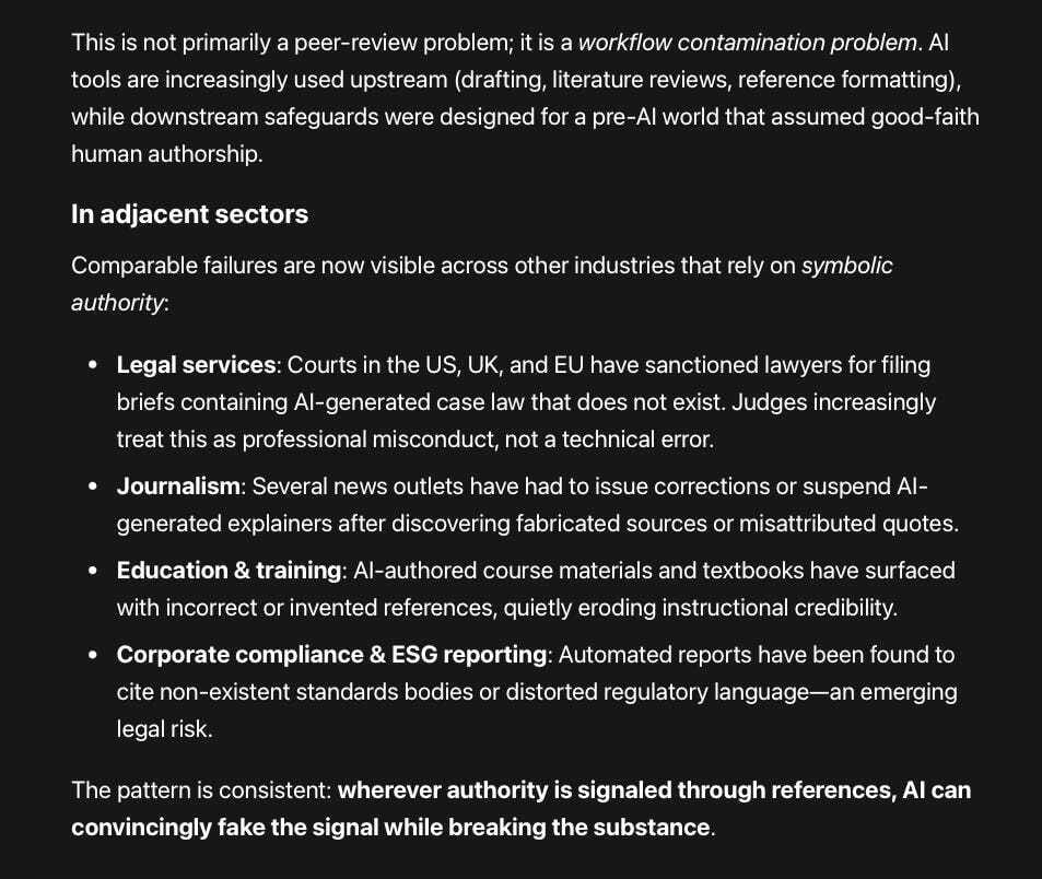 The pattern is consistent: wherever authority is signaled through references, AI can convincingly fake the signal while breaking the substance.